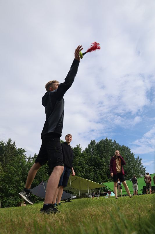 Nach zwei Jahren Coronapause konnten wir dieses Jahr über Pfingsten endlich wieder mit einer Gruppe Jugendlicher und junger Erwachsener zur CVJM Pfingsttagung nach Bobengrün fahren. Trotz der zu Beginn durchwachsenen Wetterprognose, waren alle schon freudig gespannt auf die gemeinsamen Tage und wir wurden nicht enttäuscht. Die Botschaften der Predigten schwingen noch in uns nach und auch die Musik klingt uns noch im Ohr. Besonders die Lebensgeschichte von Wilhelm Buntz, der nach seiner einer Karriere als Gangster im Gefängnis die Seiten der Bibel als Zigaretten rauchte und schließlich Jesus kennenlernte, hat uns tief beeindruckt. Und natürlich wurde Indiaca gespielt. Eine unserer Mannschaften schaffte es sogar in die dritte Spielrunde und wurde kräftig bejubelt. Mal sehen, ob wir im nächsten Jahr im Vorfeld trainieren werden und dann noch weiter kommen. 😉 Auf jeden Fall befanden wir uns die Tage unterm „offenen Himmel“. Sowohl im Bezug auf die Spürbarkeit Gottes während der Veranstaltung, als auch aufgrund der Tatsache, dass wir, bis auf einen Schauer, tatsächlich die ganze Zeit trocken und sogar mit ein paar Sonnenstrahlen die Tage genießen Konnten.